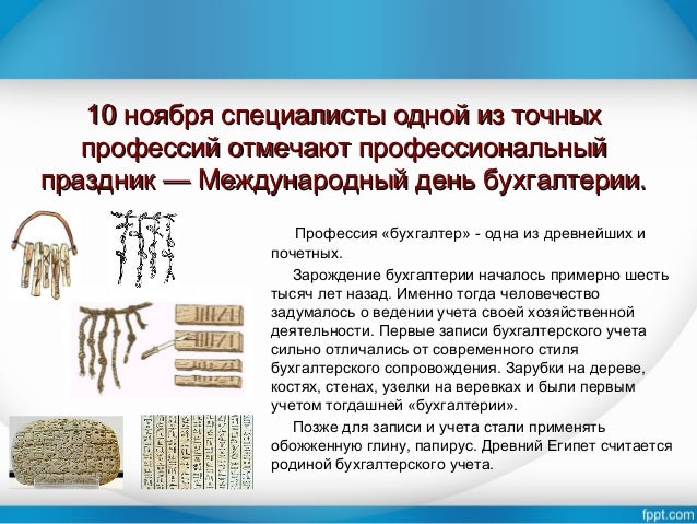 Международный день бухгалтерии День бухгалтера 10 ноября Поздравить с праздником Сегодня свой праздник отмечают специалисты одной из точных профессий Фото. 10 ноября 2021 года - Всемирный международный день бухгалтера. 10 ноября 2021 дата когда какого числа праздник Истоки возникновения одной из самых точных профессий берут свое начало в 15 веке.